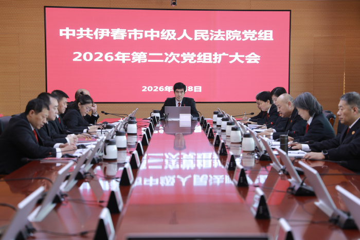 1月8日下午,伊春市中级人民法院召开2026年度第二次党组(扩大)会。 会议由伊春中院党组书记、院长王昭权主持,伊春中院部分党组成员参加会议,审委会专职委员、副处级干部、各部门负责人列席会议。 会议传达学习了习近平总书记在中央经济工作会议的重要讲话精神,黑龙江省委十三届九次全会暨省委经济工作会议精神和伊春市委十三届九次全会暨市委经济工作会议精神,听取了伊春中院2025年工作总结和2026年工作安..