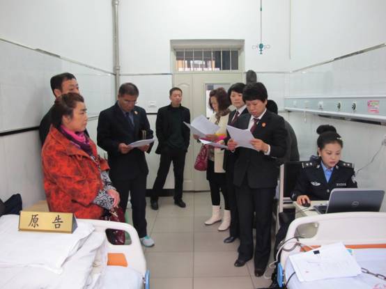 为更好在为群众提供便利、贴心的司法服务,10月28日,乌马河区法院在市中心医院公开开庭审理了被告人陈某因涉嫌犯故意伤害罪一案将法庭“搬”进了医院。