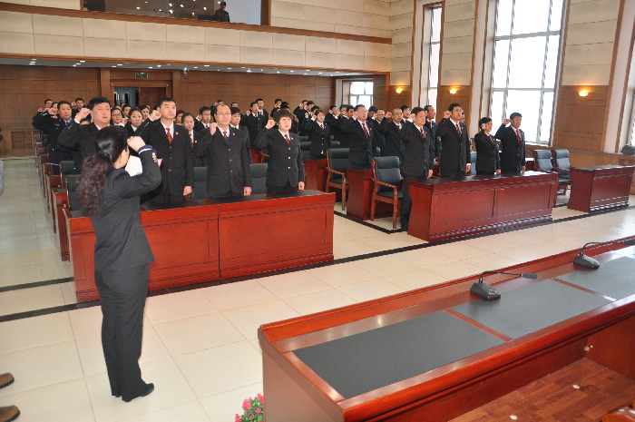 “我是中华人民共和国法官,我宣誓:忠于祖国,忠于人民,忠于宪法和法律……”。这是市中级法院机关的全体法官在首个国家宪法日,面向国旗,庄严地向《宪法》作出的郑重承诺。