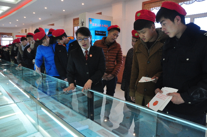向《宪法》宣誓结束后,市中院机关迎来了市职教中心的学生、社会各界代表和部分市内媒体代表共100余人。在诉讼服务中心,大家在诉讼引导员的引领下,体验了一回从法律咨询到诉讼立案的全程司法服务;在科技法庭,庭审数字化系统的演示,科技进步对司法的影响给大家留下了深刻的印象;在文化建设展厅,法官们一幅幅精彩的书画摄影作品和文学作品叫大家赞赏不已;在院史展柜前,大家驻足观看法院在建设历程中,为我们留下的深深记忆和日新月异的变化。