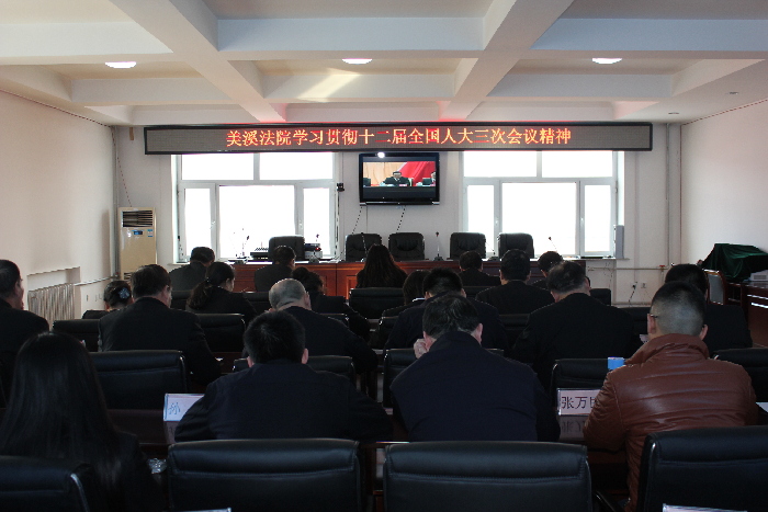3月17日15时,最高法院召开了“全国法院学习贯彻第十二届全国人大三次会议精神”电视电话会议,美溪区法院领导班子成员及21名干警在三楼视频会议室参加了收看活动。