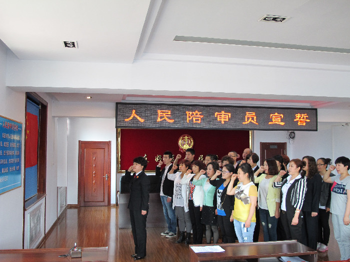 12日上午,友好区法院为贯彻党的十八届三中、四中全会关于人民陪审员制度改革的部署和最高人民法院、司法部有关规定,组织21名人民陪审员进行了宣誓。