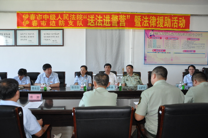 7月8日,伊春中院审委会主任郭良富、刑一庭副庭长祖荫峰、民一庭副庭长焦杨在机关党委书记徐景伟的带领下驱车两个半小时,来到武警伊春市边防支队嘉荫朝阳边防派出所开展“送法进警营”活动。这是市中院与武警伊春边防支队开展警地共建的延伸,是落实法律咨询进警营活动的一项具体举措。