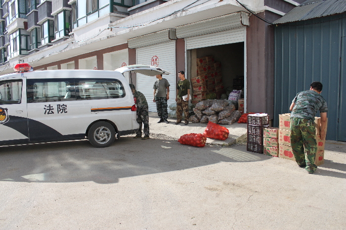 8月初以来,黑龙江省嘉荫县遭受百年一遇的特大洪水灾害,抗洪前线官兵日夜奋战,十分辛劳。自洪水爆发以来,嘉荫县城地段水位猛涨,已经超过警戒水位1.2米多,所有菜农和商家店铺都已撤离,县城内蔬菜、水果紧缺。嘉荫县法院了解到这一情况后,为了让奋战在抗洪前线的官兵吃上新鲜的水果,保持良好的战斗力,近日,嘉荫县法院干警们自发地捐款采购了30箱各种新鲜水果送到搞洪前线指挥部,为抗洪一线官兵献上爱心,法院干警用自己的实际行动诠释了军民鱼水情深和对广官兵的敬意。