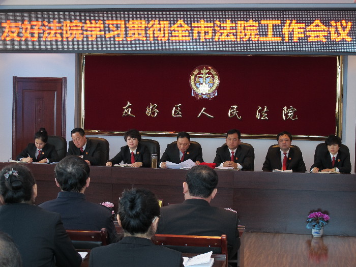 2016年3月1日全市法院工作会议结束后,友好法院及时召开党组会议,落实传达全市法院工作会议精神,并于3月3日上午召开了全院干警大会。