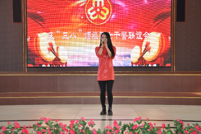 热情洋溢的彩绸舞是整台文艺演出的开门大戏,女干警们收放自如的舞姿,引来台下热烈掌声,会场内座无虚席,笑语飞扬。宋佳等五名女干警共同演唱的《大中国》,不但表达了对祖国的热爱,也展现了新时代女法官的朝气蓬勃和对生活的热爱。由政治部主任赵冶萍等五名女干警选送的配乐诗朗诵《阳春三月天 巾帼展风采》,表达了新时代女法官追求司法公正的坚定理想信念及向上精彩的生活方式,与在座众多女法官产生共鸣。