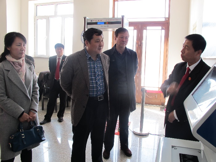 调研组一行实地查看了汤旺河法院诉讼服务中心、科技法庭、执行局、审管办、档案室等办公场所,并详细了解了诉讼服务一体机、科技法院业务应用系统、裁判文书上网、执行信息公开等操作流程,对汤旺河法院的工作流程与信息公开进行了全面了解。查看结束后,进行了座谈交流,该院党组书记、院长荣涛,党组成员、副院长刘德慧陪同调研人员参加了座谈会。
