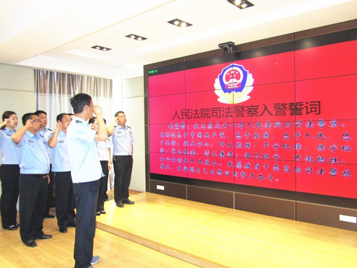 之后,第九党支部利用党课宣讲之际,组织法警支队全体党员及干警开展重温入警誓词活动。通过重温入警誓词再一次响亮地表达全体干警了对党的忠诚誓言、对警察事业的热忱之声,表达了对党、对司法警察事业的无限热爱之情,进一步坚定了为党、为司法警察的事业奋斗终生的决心。