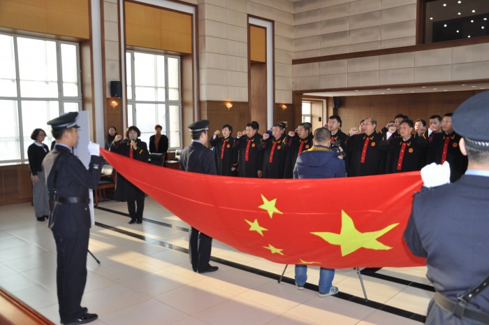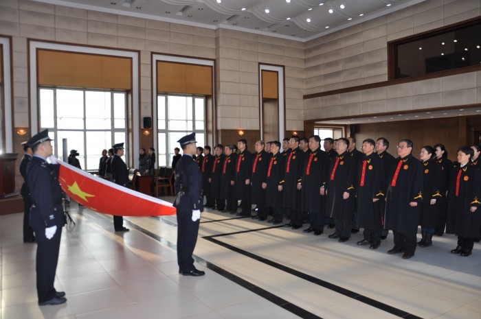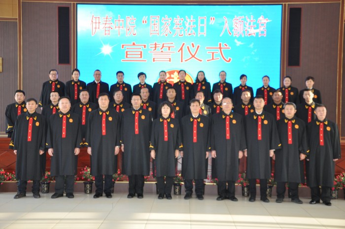 这是在12月2日,第三个“国家宪法日”即将来临之际,伊春中院组织首批入额的37名员额法官向宪法宣誓仪式现场的一幕。