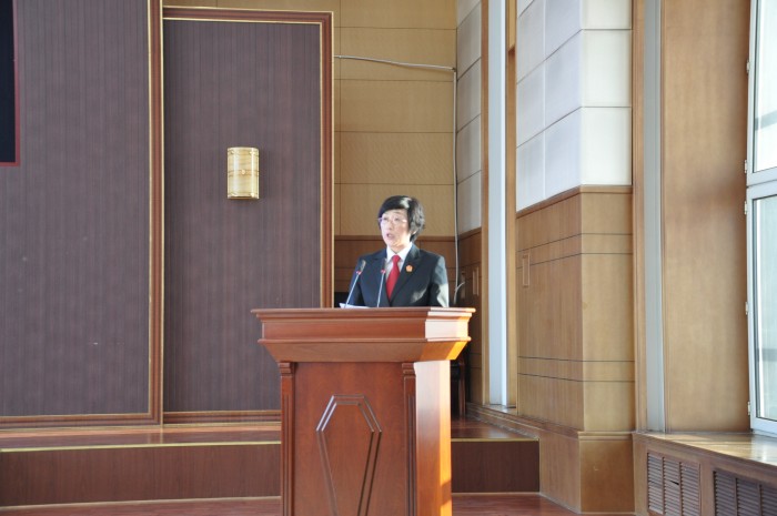 最后,院长石岩梅对员额法官表示祝贺,并期望广大入额法官能牢记这个特殊日子,牢记自己的誓言,以更加昂扬的斗志、更加勤勉的态度、更加务实的作风、更加担当的精神,将伊春审判事业不断推向前进。