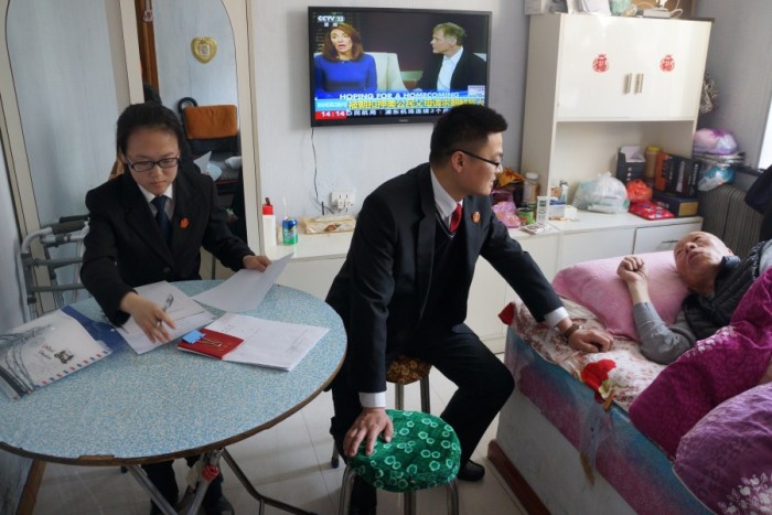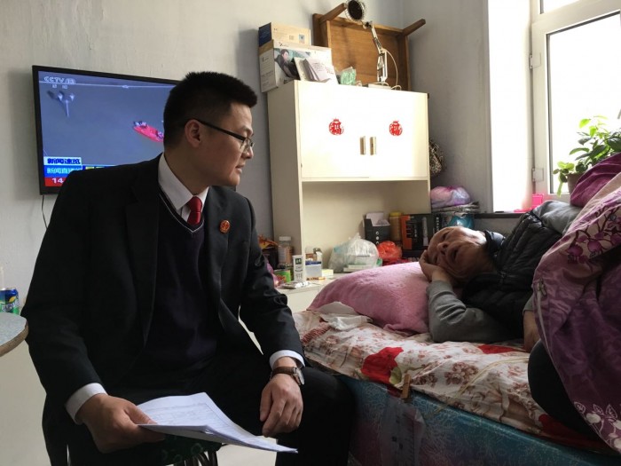 当事人朱某为75岁高龄的老人,并且患有脑梗塞、小脑萎缩等疾病,长期卧床,身上插着尿管,起居饮食需要子女照顾,行动极为不便。了解到当事人的实际困难,青年法官郭运涛决定采取家中办案的模式,这才有了开头的这一幕。