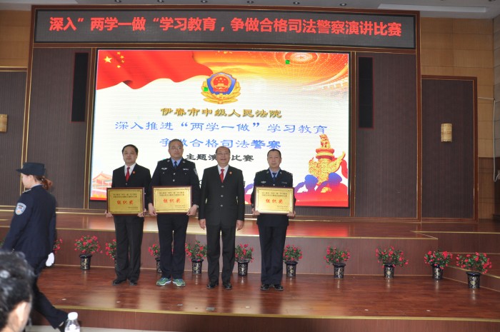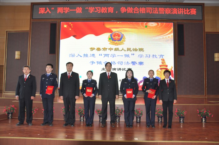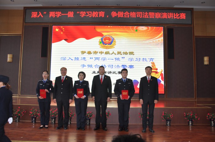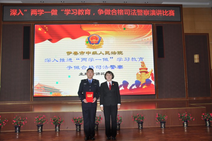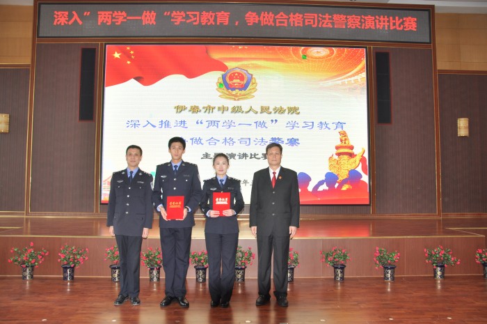 25日下午,伊春市法院系统深入推进“两学一做”学习教育、争做合格司法警察主题演讲比赛复赛圆满落下帷幕。经激烈角逐,10名选手分获一、二、三等奖和优秀奖,三个基层法院被授予优秀组织奖。伊春中院党组书记、院长石岩梅出席比赛并讲话。省法院法警总队副总队长杨冶、警务室主任高贵志现场指导比赛。伊春中院班子全体出席比赛。全市基层法院主管法警工作副院长、警队大队长,中院机关部分干警观看了精彩比赛。