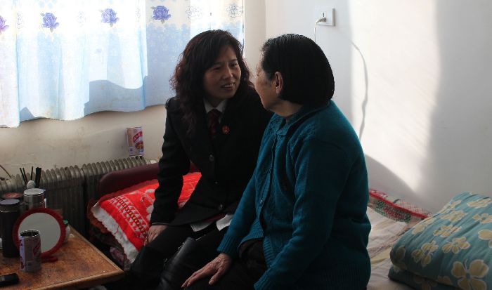 去年年初,郝大娘病了,无法照顾自己。她让邻居给儿子捎信,儿子们却一个也没回来。眼看病情越来越重,气愤之下,老太太在邻居的搀扶下,把五个儿子告上了法庭。吴海芝热情地接待了郝大娘,案件审理期间,吴海芝在法庭、在居委会、在郝大娘及几个儿子家,一次又一次地劝和调解,但五个儿子意见始终不能统一。去年7月,法院判决郝大娘和大儿子共同生活,其它四个儿子每月给付200元赡养费。郝大娘的赡养问题是解决了,可是吴法官的心却一直放不下——解不开老人儿子们心里面的疙瘩,这样的判决结果只能是让他们被动接受,可是,这不是吴海芝想要的结果,她要的是让老人儿子们亲情回归,让老人不但衣食无忧,精神上也有个寄托。