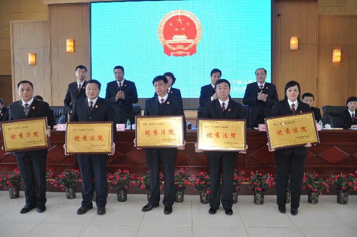 会议表彰了2013年度全市法院先优集体、个人和办案调解标兵、能手。全市法院基层法院院长、政工科科长和市中院班子全体、部门负责人、副科级以上干警参加了会议。