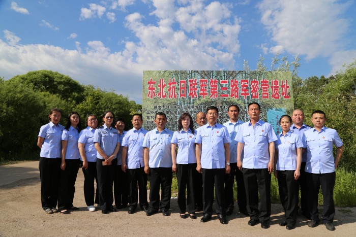 在抗联老战士、黑龙江省原政协副主席李敏于2001年来密营遗址留下的“抗联烈士永垂不朽”的刻字题词前,听取黑河营林所所长解玉生对密营遗址及东北抗日联军第三路军抗日斗争历史的回顾。在无名烈士墓碑前,党员干警身着法服,面向党旗,在党旗下庄严宣誓,“我志愿加入中国共产党……,永不叛党”。再温入党誓词,怀着崇敬和哀思的心情,回顾那段抗击日本侵略者艰苦卓绝的岁月,感受革命烈士无私无畏的伟大情怀。