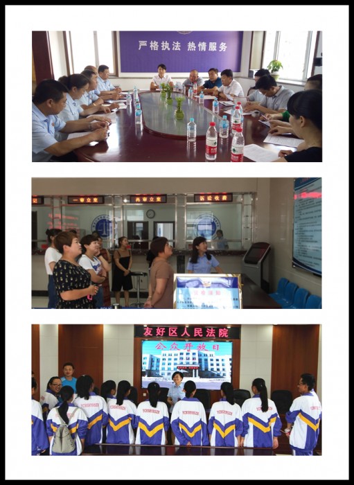 伊春中院党组成员、副院长于水,党组成员、政治部主任赵冶萍,机关党委书记徐景伟,政治部副主任田爱民组织参与了市中院机关“公众开放日”。各基层法院主要领导组织参与了本院的“公众开放日”。当地媒体进行了采访报道。全市法院的门户网站、官方微博、微信公众号进行了信息发布。