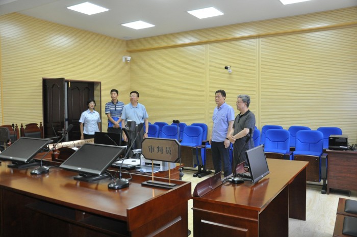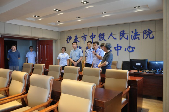 调研组一行来到伊春中院诉讼服务中心,对大厅窗口的人员配备、立案流程公开情况、导诉台设置、诉前调解及案件查询平台、黑龙江法院12368诉讼服务平台等软硬件建设使用情况进行参观指导,随后前往科技法庭,对基础建设及科技设施的配备使用情况进行详细了解,李彦凯院长边走边看边询问,期间对伊春中院司法改革进程进行了认真了解,并表示司法改善代表着中国司法事业的跨越式发展,一定要紧跟最高院及省高院司改进程。