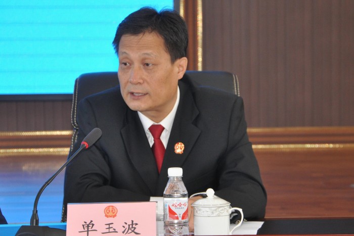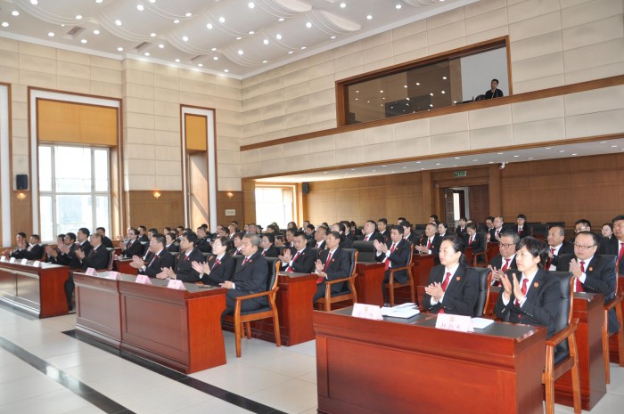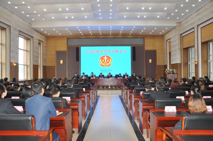 伊春中院党组副书记、常务副院长单玉波主持会议并作表态发言。中院班子成员及机关全体干警出席会议。