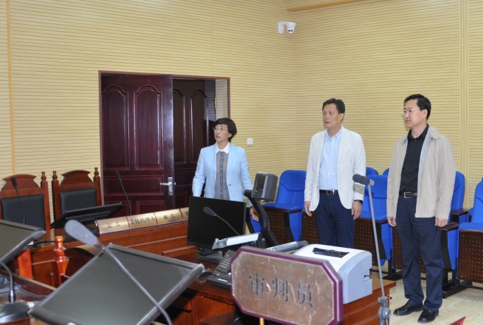 韩日强还查看了中院机关文化建设展厅、荣誉室、执行指挥中心、档案室、诉讼服务中心等院内基础设施建设情况。