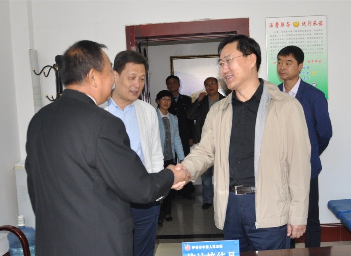 8月31日上午,伊春中院党组书记、院长候选人韩日强在中院机关全体干警见面会后,在党组副书记、常务副院长单玉波,党组成员、政治部主任赵冶萍的陪同下,第一时间逐部门了解工作情况,与干警共话法院发展未来。