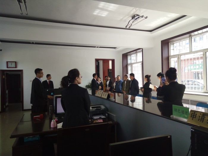 在解说员的引导下,大家先后参观了诉讼服务中心、科技审判法庭、执行指挥中心和警务安检处,系统了解了立案登记制改革、庭审直播系统操作、裁判文书公开上网、 执行查控室的使用等法院工作内容。