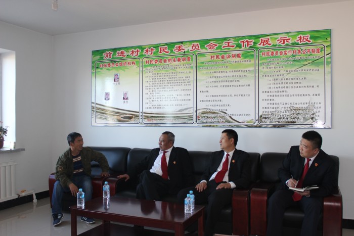 在前进村,法官们与前进村村长赵明君围绕土地确权、土地征收、农村土地承包经营合同等与群众生活息息相关的法律知识进行探讨,同时热心、耐心、细心地向群众讲解与生产生活相关的法律常识,引导他们遇事找法,解决问题靠法,运用法律武器维护自身的权益。