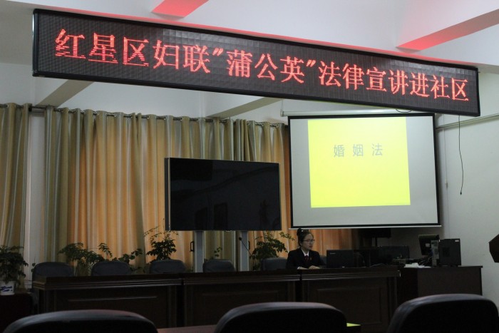 9月29日, 红星区法院女法官赵春颖积极参加区妇联组织开展的“蒲公英”法律知识宣讲活动,为东升及前进社区的100余名社区群众讲授了新婚姻法相关知识。