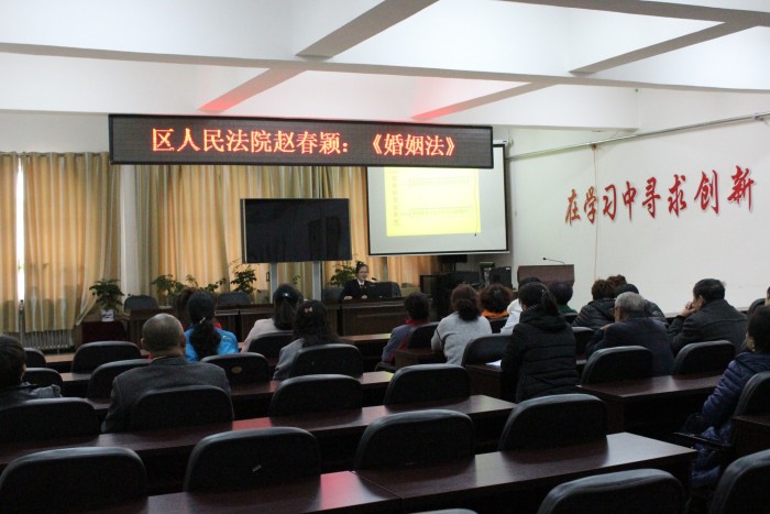 授课过程中,赵春颖运用理论与实例相结合的方式对新婚姻法解释进行了详细的解读,并着重阐述了夫妻共同财产的认定问题及婚前、婚后财产分割等一系列认识不清的问题,在座社区群众认真听讲并做笔记。