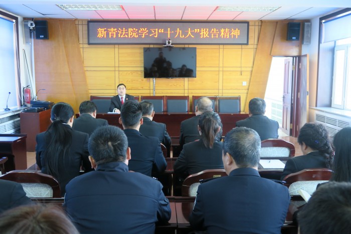 新青区人民法院将学习、宣传、贯彻落实党的十九大精神作为当前和今后一个时期的首要政治任务,坚持常态化、制度化,以灵活多样的举措确保学习贯彻十九大精神取得实效。
