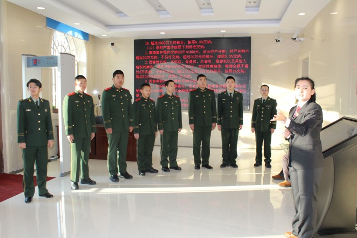 活动中,官兵们首先参与旁听了一起民间借贷纠纷案件的审理,亲身感受到庭审的严谨和规范,对法院审判工作有了直观的了解。庭审结束后,在法院工作人员的指引下,官兵们秩序井然,饶有兴致地参观了法院诉讼服务中心、审委会会议室、执行指挥中心、科技法庭、荣誉室,零距离体验法院文化,感受司法的公平与正义,工作人员边走边讲,详细认真地介绍了法院的各项职能和工作,并一一回答了官兵们感兴趣的一些问题。