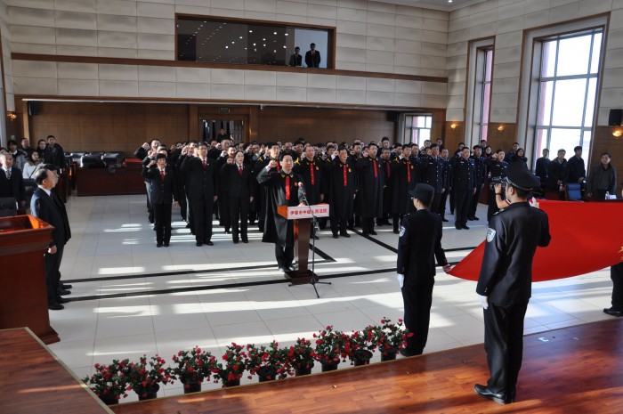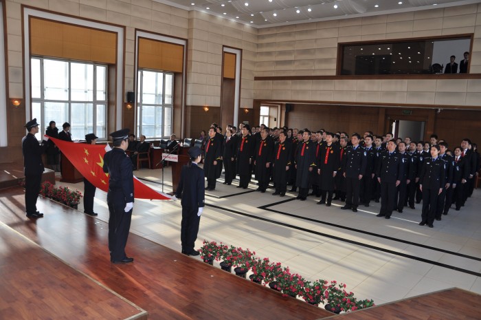 10时15分,伊春中院机关全体干警整齐列队,现场全体人员起立,护卫国旗司法警察入场,伊春中院机关干警向宪法宣誓仪式正式开始。大家面向国旗齐声高唱国歌,伊春中院党组书记、代院长韩日强领誓。市人大常委会副主任马仁祥、市政协副主席张泱监誓,市委纪检委、市委组织部、市委宣传部、市委政法委、市直机关工委、市妇联、共青团伊春市委和律师界的代表观誓。干警激昂的誓词将宪法宣誓仪式推向高潮。
