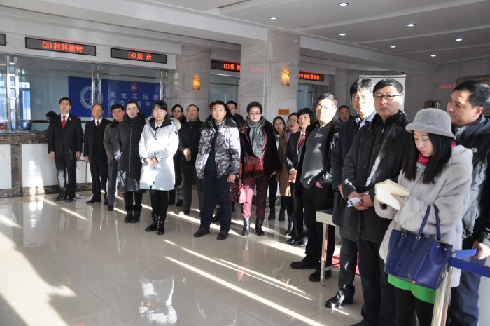 随后,受邀监誓和观誓的嘉宾参加了伊春中院机关组织的“12.4”公众开放日活动。在韩日强和赵冶萍的陪同下参观了诉讼服务中心、科技法庭、警队文化走廊、视频程控中心、荣誉室、文化展厅、执行指挥中心。他们看的仔细、听的认真,给予了高度评价。观后大家一致认为,伊春中院在党的十八大以来的五年中,在市委的坚强领导下,在人大、政协的法律和民主监督下,在社会各界的支持和帮助下,坚持正确政治方向,克服困难、埋头苦干,开拓创新、锐意改革,取得了很大成绩,突出表现在法院文化建设、科技信息化建设等方面,队伍的精气神、凝聚力和司法为民、服务大局的能力得到极大地提升,审判工作运行管理已达到现代化水平,法院各项工作更加阳光、更加智慧,不愧为全国文明单位,希望全市法院按照党的十九大提出新战略、新思想、新要求,在新时代实现新跨越,取得更优更佳的业绩,为美丽伊春、法治伊春建设贡献力量。