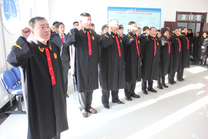 上午10:15分,奏响国歌之后,在人大代表、政协委员的监誓下,党组书记、院长朱科华身着法袍,右手握拳领誓,28名干警面向国旗,精神饱满,依法进行宪法宣誓:“忠于中华人民共和国宪法,维护宪法权威,履行法定职责,忠于祖国、忠于人民,恪尽职守、廉洁奉公,接受人民监督,为建设富强、民主、文明、和谐的社会主义国家努力奋斗!”