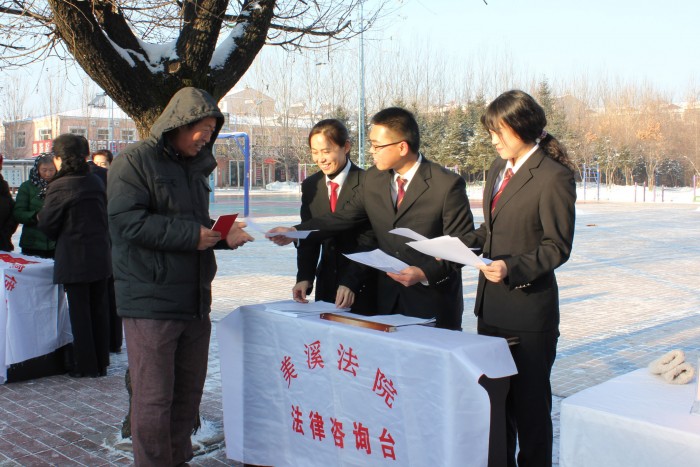 12月4日上午,美溪法院的青年干警在美溪区广场设立法律咨询台,向群众宣传宪法等各类法律知识,帮助广大社区居民懂法、守法和用法,增强群众对国家法律的认知,树立信仰法律、遵纪守法的法律观念。活动中共接待群众20余人,发放宣传单100余份。