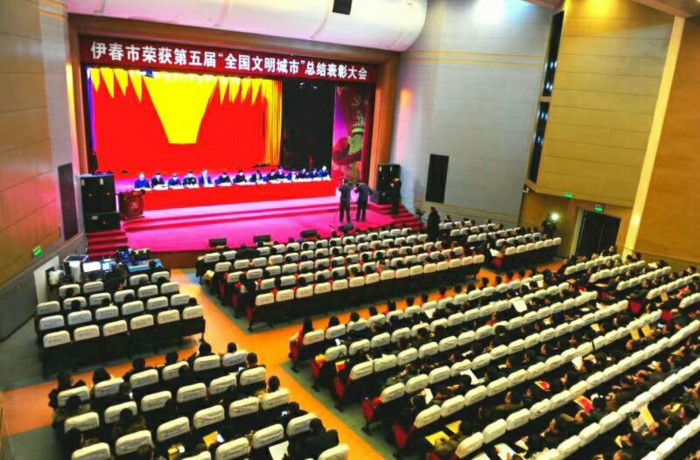 12月8日上午9时,伊春市委、市政府在市工人文化宫隆重召开第五届“全国文明城市”总结表彰大会。市委领导为伊春市中级人民法院转授全国文明单位奖牌。市中院党组成员、副院长于水代表市中院上台领牌。