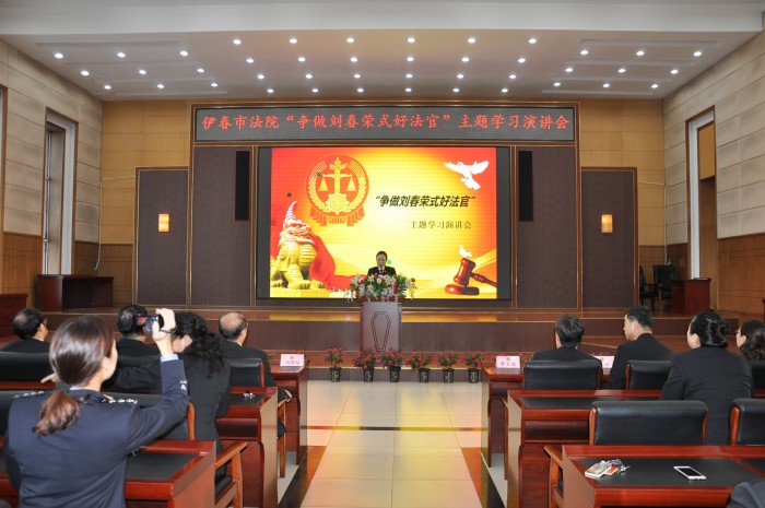 12月15日上午,伊春中院“争做刘春荣式好法官”主题学习演讲会于七楼会议室如期举办,来自中院机关各部门的13名青年干警用声情并茂的演讲表达了争做刘春荣式好法官的坚定信心和决心。伊春中院党组副书记、常务副院长单玉波及其他党组成员、全体干警出席演讲会。