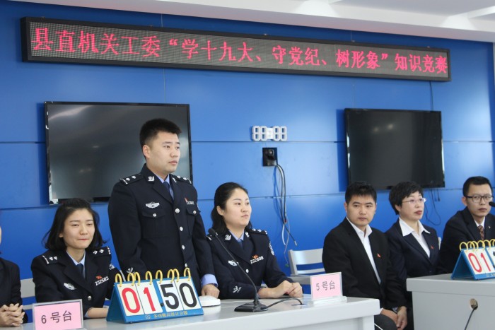 为了深入学习宣传贯彻党的十九大精神,激发广大党员干部的学习热情,提高党员的党性修养,嘉荫县直机关工委举办了“学十九大 守党纪 树形象”主题知识竞赛活动。全县22个代表队经过初赛选拔,嘉荫县法院等6支代表队进入决赛。决赛采取必答题、抢答题、风险题三轮答题方式。在决赛各环节中,嘉荫县法院参赛选手以优异的学习成果和比赛现场的精彩表现,不时赢得现场观众的阵阵掌声。比赛过程中还穿插了主持人精彩点评及观众问答互动环节,比赛现场的气氛既紧张、又活跃。经过紧张激烈的角逐,嘉荫县法院代表队荣获一等奖,为十九大精神知识竞赛活动画上完美的句号。
