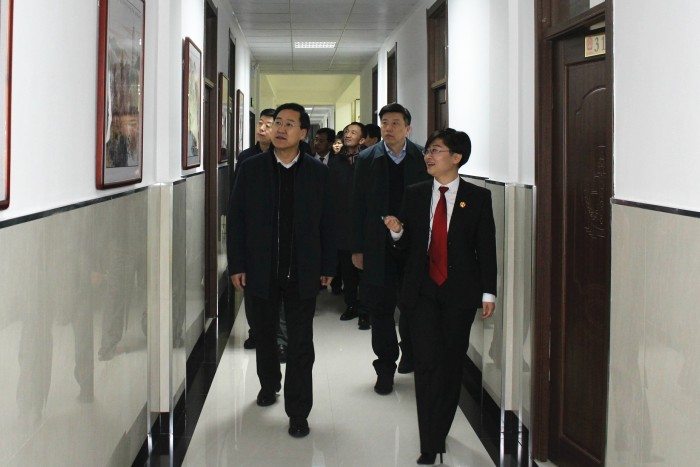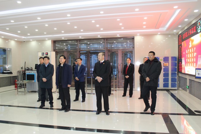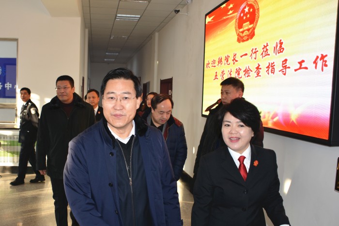 在友好区法院,韩日强与友好区委书记张延杰,区人大主任徐宝林,区政协主席陈清林,区委副书记、区政法委书记孙彦全一同检视友好区法院院容院貌,听取友好区法院工作汇报,肯定了友好区法院在服务地方经济社会发展、加强队伍建设等方面所取得的成绩,鼓励友好区法院积极创新、多做有益尝试、多出成功经验。