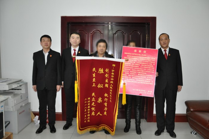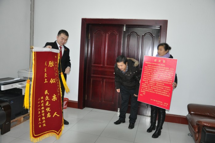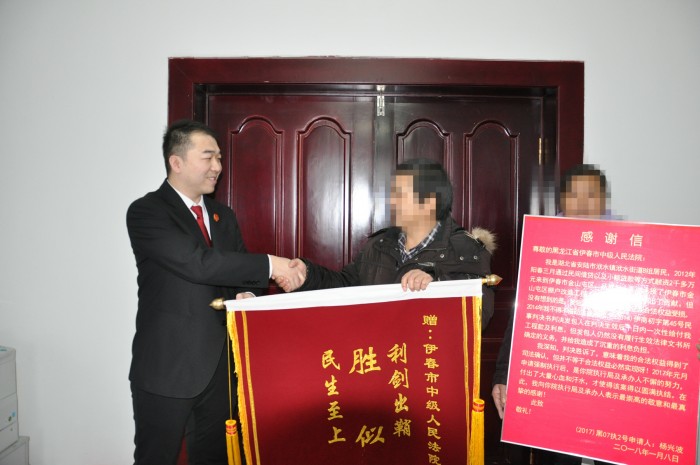 “是你们执行局和张法官他们想方设法的努力,终于把欠我们700多万的工程款和工人工资要了回来,这样我们的工人就能高高兴兴地回家过个好年了。我向伊春中院执行局和张峻铭法官表示衷心地感谢!”申请执行人杨西博手托锦旗和感谢信激动地说。