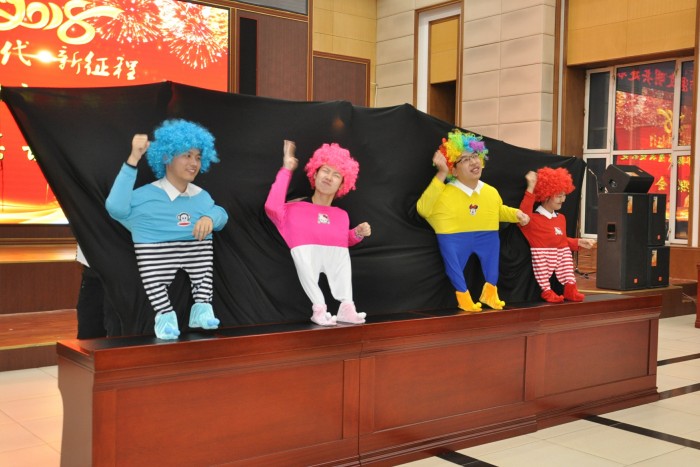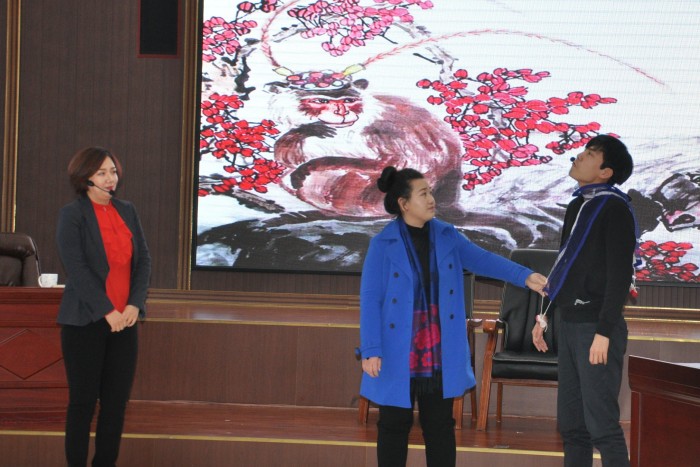 市法院研究室李秋月创意编排的小人舞、民一庭的三人小品《投其所好》,诙谐生动,使现场笑声不断。