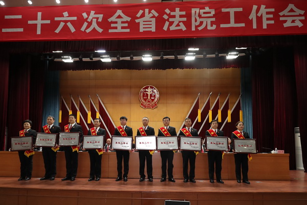 伊春中院刑事审判第一庭、伊春中院刑事审判第二庭被荣记集体二等功,伊春中院政治部、友好区法院司法警察大队、嘉荫县人民法院立案庭荣获全省法院先进集体称号。会上,伊春市法院杨洋、许柏刚、孙健、张秋妍、张巍、陈威、冯晓军、杨国臣、张晓伟、张双赢10名干警被省法院记功、表彰、嘉奖、通报表扬。