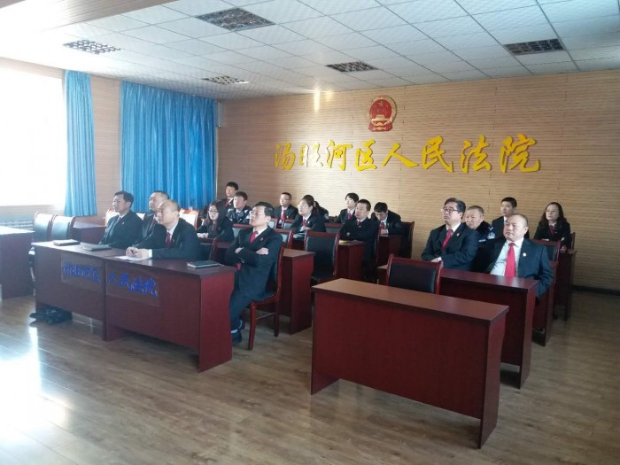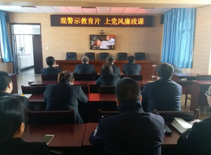 2月23日上午,汤旺河区人民法院组织全院干警观看警示教育片《永远在路上》中的第四集《利剑出鞘》。