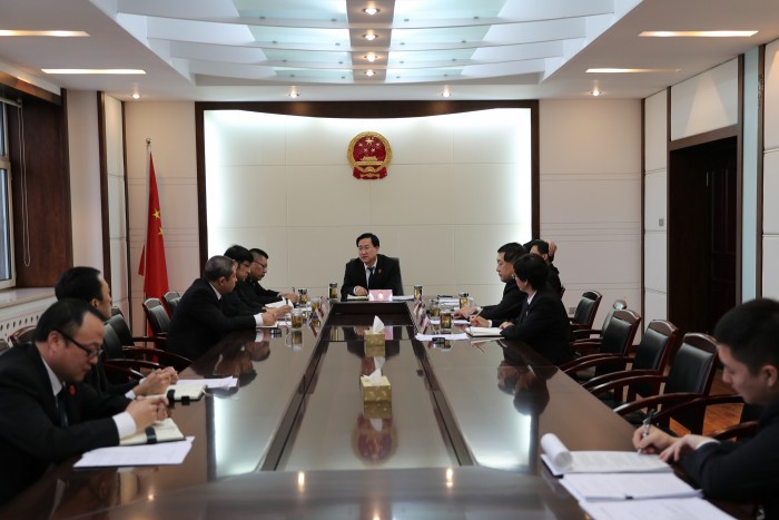 2018年3月23日,伊春市中级人民法院召开院党组中心组学习会议,全文学习习近平总书记在第十三届全国人大会议上的重要讲话。