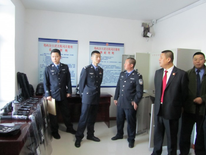 3月24日至26日,省法院法警总队警务室高贵志主任一行四人到伊春市对全市两级法院法警队伍星级警队建设情况进行考核评定。伊春中院党组成员、副院长刘铭福,法警支队支队长甘国辉陪同考核。