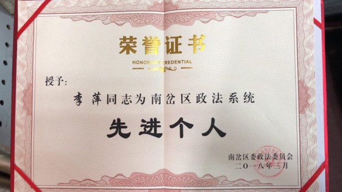 4月9日上午,在南岔区委政法工作会议上传来喜讯,南岔区人民法院政工科1个集体和李萍、李颖两名干警获得南岔区2017年度政法工作先进集体和先进个人荣誉称号。