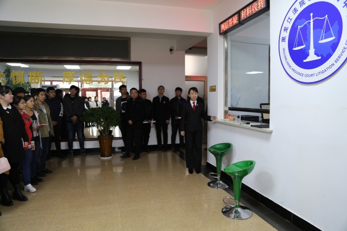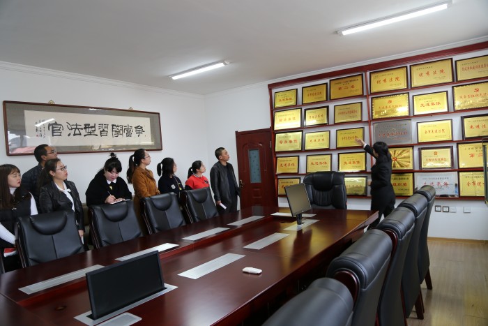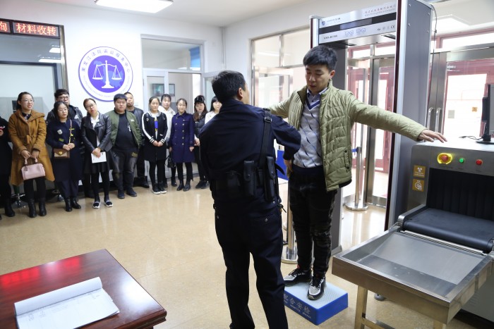 进入法院大厅,学员们就被法院专业的安检设备吸引,并亲身感受了一次安检检查,“法院的安检真规范,法警的专业素质真高。”学员们边参观边赞叹着。学员们在引导下先后参观了法院诉讼服务中心、审判庭、执行指挥中心、图书室、荣誉室和远程视频会议室,进一步了解了数字法庭建设的情况,听取了法院在案件受理、便民措施、审判公开等方面的工作介绍。学员们或赞叹于审判法庭的威严肃穆,或沉醉于亲手敲响法槌的兴奋,通过学员的提问和法官们的解答,拉近了法院与学员们彼此之间的距离。
