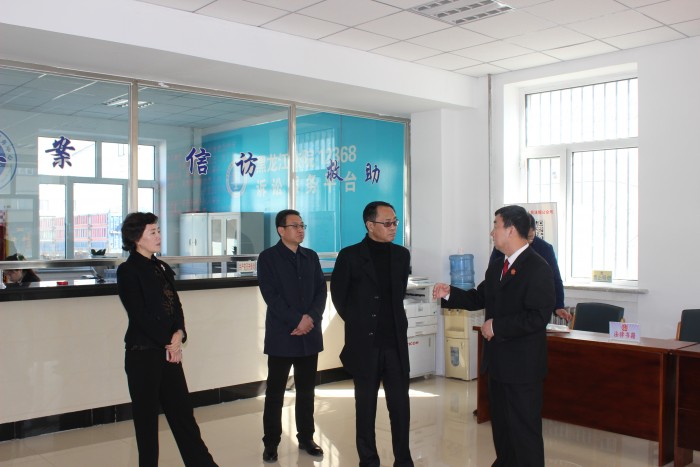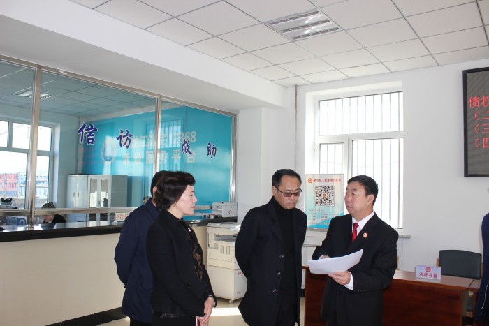 赵喜义一行实地察看了翠峦法院诉讼服务大厅等“窗口”诉讼服务场所,他边看边问并详细地听取了登记立案、诉前调解、12368服务热线运管等工作开展情况汇报,对诉讼服务中心“窗口” 积极兑现“四零承诺”,不断加强“七亮服务”等工作给予很高评价和充分肯定。