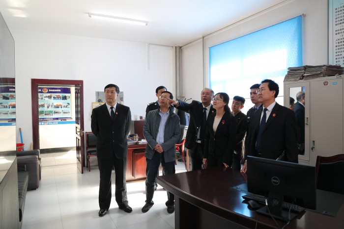 检查组按照专项检查要求,逐项检查了伊春市中院的立案受理、信访接待、诉讼服务和安保检查等窗口部门的服务情况,还检视了伊春中院的数字法庭、执行指挥中心和荣誉室。检查组认真检查各服务窗口配置的设备设施,查阅有关档案和记录,与中院干警深入交流,详细了解窗口服务情况,并直观感受中院干警的工作状态和精神风貌。伊春市中院党组书记、院长韩日强,副院长顾炳恒,政治部主任赵冶萍陪同检查。