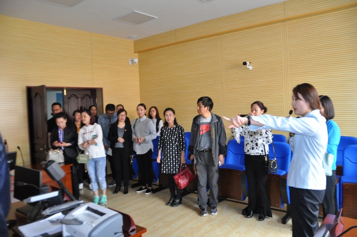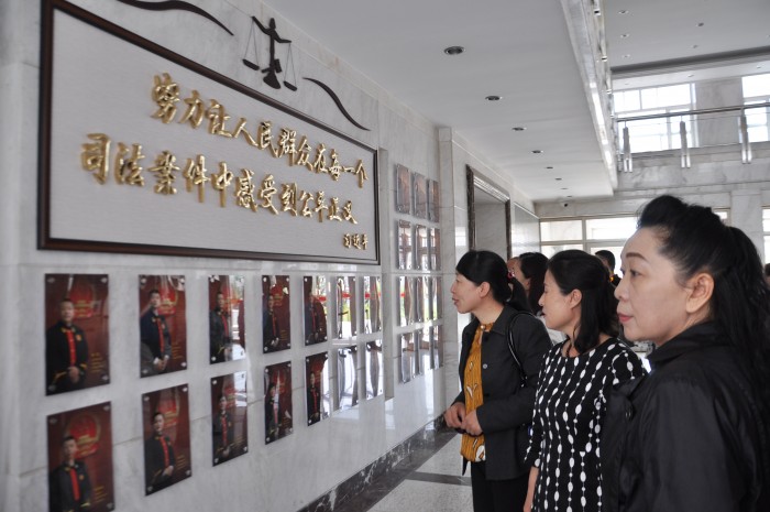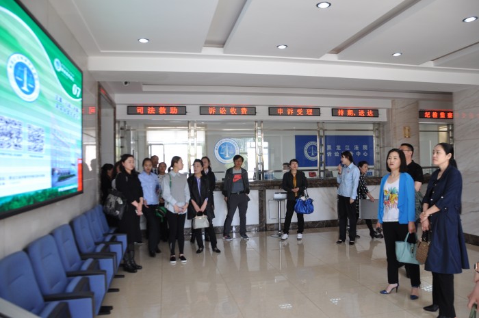 参加活动的同志在市中院副院长于水、政治部主任赵冶萍的陪同下,在中院干警的引导下依次参观了法院的立案大厅、信访服务大厅、数字化法庭、法警支队、执行指挥中心等办公区域。还参观了法院的荣誉室和法院文化建设展厅。