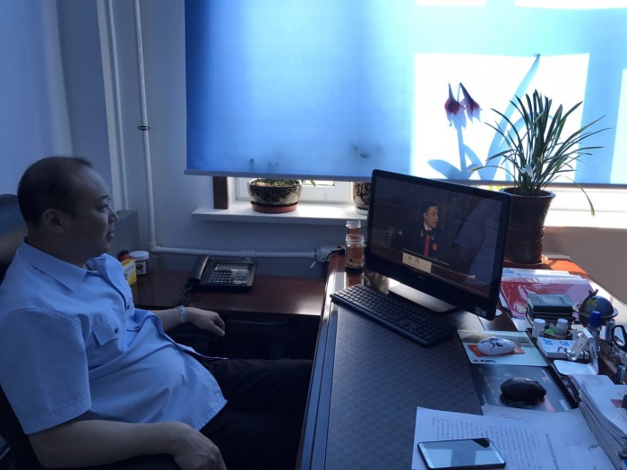 5月29日上午9时,伊春市两级法院干警分别在本院或公务途中,通过视频系统、微机、手机等网络直播平台,采取集中或分散的形式,收看了二级大法官、省法院党组书记、院长石时态主审并担任审判长,依法公开开庭审理的一起侵害商标权纠纷二审案件的庭审直播。
